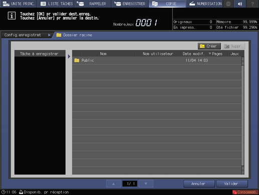 Lorsque Enreg. DD est sélectionné, la tâche est enregistrée sans être copiée.
