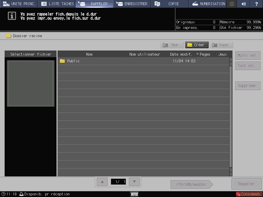 Appuyez sur la touche RAPPELER de l'écran tactile.