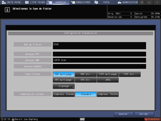 Vous pouvez envoyer une tâche à des ordinateurs du réseau en utilisant le protocole approprié (FTP, SMB ou WebDav).