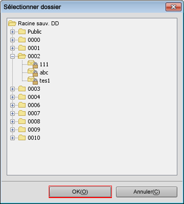 Explication supplémentairePour sélectionner un dossier protégé par un mot de passe, entrez le mot de passe dans l'écran suivant et cliquez sur OK.