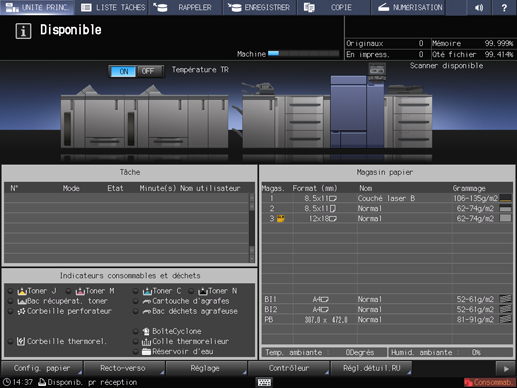 1. Sur l'écran tactile de l'imprimante, appuyez sur Réglage sur l'écran UNITÉ PRINC.