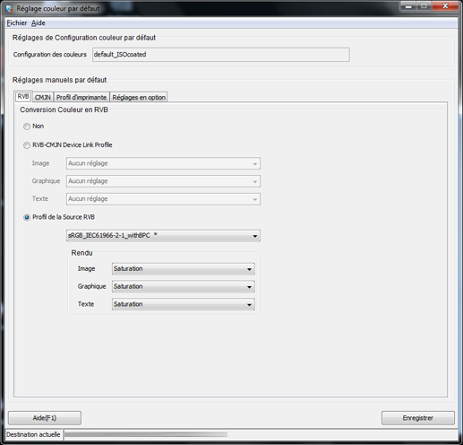 Réglages de Configuration couleur par défaut