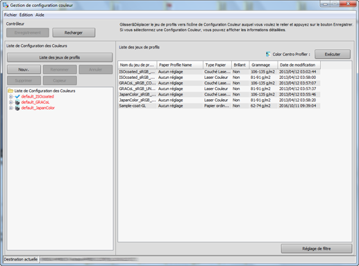 Vous pouvez créer une configuration couleur avec Color Centro et enregistrer les jeux de profils existants pour activer la configuration couleur.