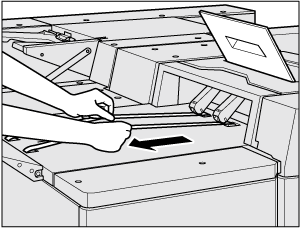 Explication supplémentaireÉlevez légèrement les deux courroies de transport avec les mains, puis tirez-les toutes les deux vers la gauche en même temps afin d'exposer les zones cachées.