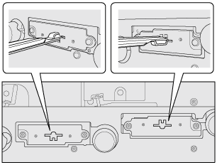 Explication supplémentaireVeillez à ce que la pointe de l'outil de nettoyage ne soit pas en contact avec la butée. Une mauvaise mise en place risque d'endommager la pointe de l'outil de nettoyage.