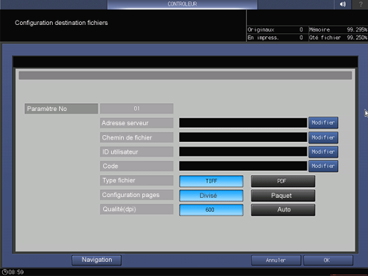 Appuyez sur la touche Navigation de l'écran Configuration transmission de fichiers.