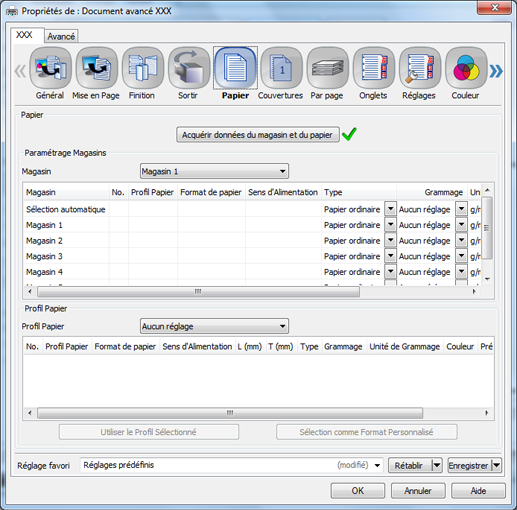 Cliquez sur l'onglet Papier, puis sur Acquérir données du magasin et du papier.