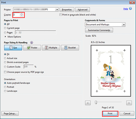 Sur l'écran Impression, entrez le nombre de Copies et cliquez sur Impression.