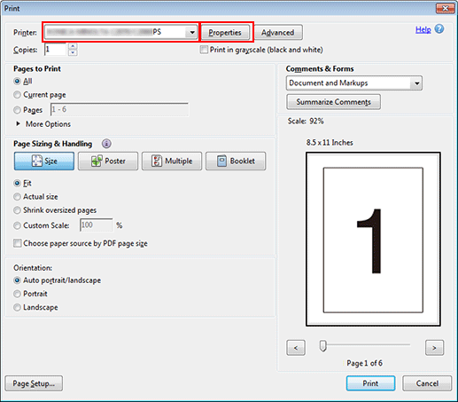 Sélectionnez l'imprimante à utiliser pour l'impression et cliquez sur Propriétés.