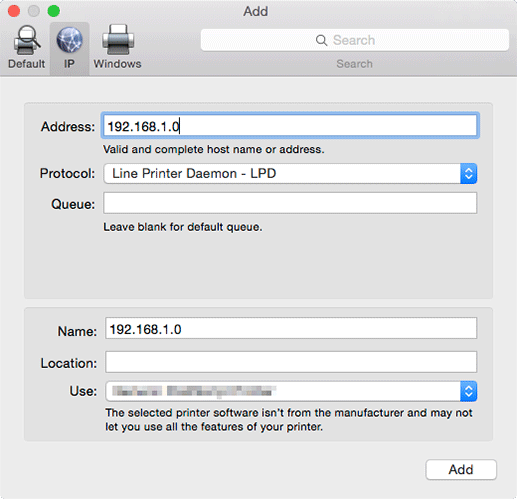 Dans Protocol, sélectionnez Line Printer Daemon - LPD.