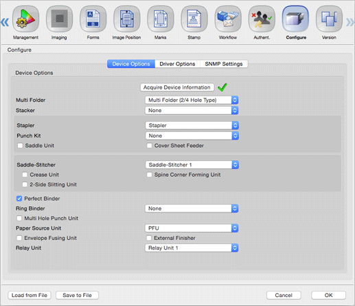 est affiché à la droite de [Acquire Device Information]. En cas contraire, cliquez sur [Acquire Device Information] pour acquérir les informations des périphériques en option.