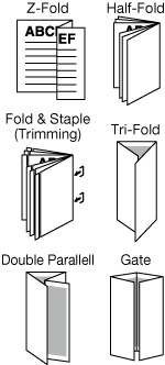 Pour utiliser la fonction Pliage, vous devez installer l'unité de pliage multiple, l'agrafeuse et le kit de piqûre en option.