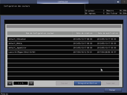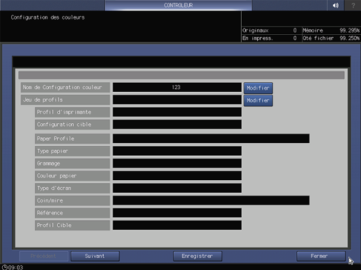 Associez la configuration cible créée à un jeu de profils et créez une configuration des couleurs. Cette section décrit l'utilisation d'un jeu de profils existant.