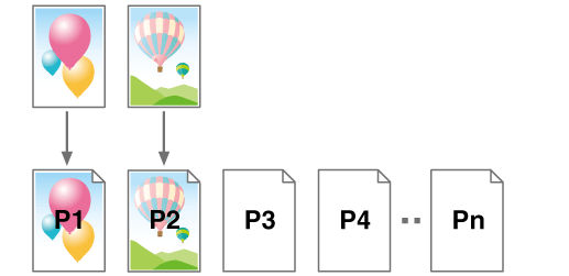 Si vous spécifiez sept pages, elles sont imprimées comme illustré ci-dessous.