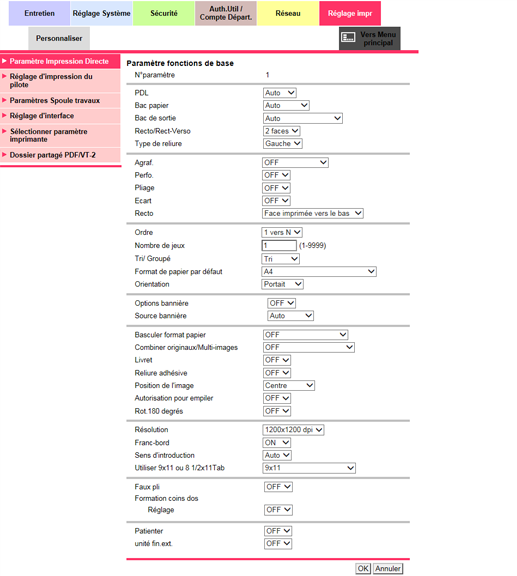 Vous pouvez aussi effectuer ce réglage sous Contrôleur sur l'écran UNITÉ PRINC. Pour en savoir plus sur le réglage, voir Configuration de base.
