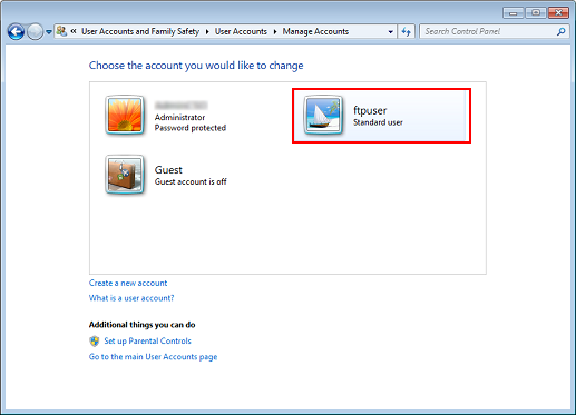 Cliquez sur le compte utilisateur à utiliser pour accéder au site FTP.