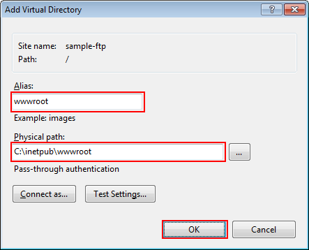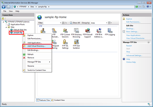 Explication supplémentaireL'ajout d'un répertoire virtuel vous permet de gérer le répertoire du serveur Web sur FTP.