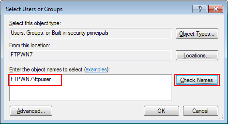 Entrer les noms d'objet à sélectionner | FTPWN7\ftpuser
