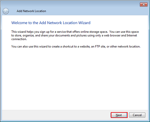 Entrez un nom pour l'emplacement réseau et cliquez sur Suivant.