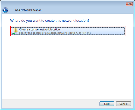 Sélectionnez Choisissez un emplacement réseau personnalisé et cliquez sur Suivant.