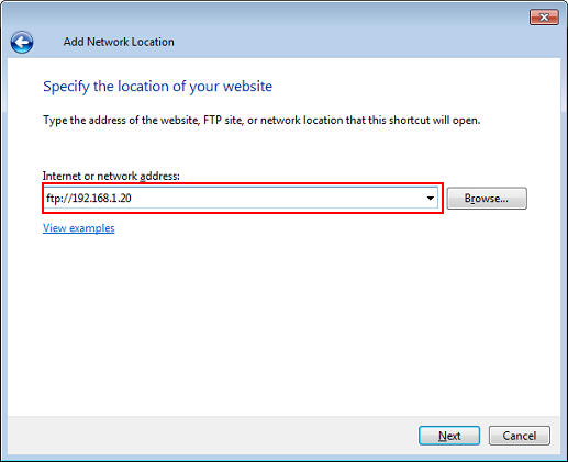 Adresse du serveur | Adresse IP de l'ordinateur configuré comme site FTP