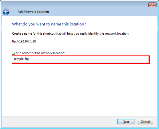Exemple : sample-ftp est entré comme nom d'enregistrement.
