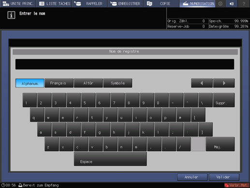 Entrez le nom d'enregistrement et appuyez sur Valider.
