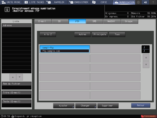 Explication supplémentaireAprès avoir appuyé sur NUMÉRISATION, appuyez sur FTP pour afficher cet écran.
