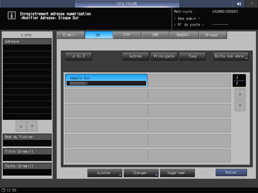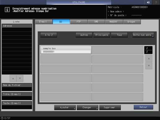 condition préalableVous pouvez enregistrer 150 destinations sur disque dur (boîtes utilisateur) max.