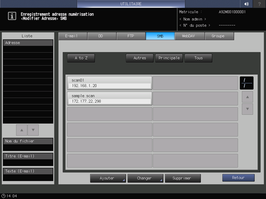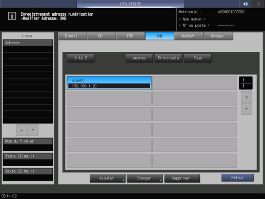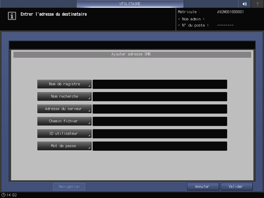 Numérisation|Enregistrement d'un serveur SMB comme destination