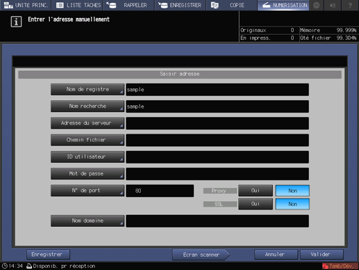 Explication supplémentairePour revenir à l'écran NUMÉRISATION, appuyez sur Adresse.