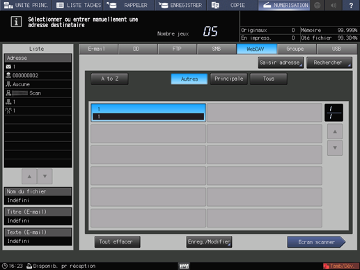 Explication supplémentairePour sélectionner une adresse enregistrée, voir Utilisation du serveur WebDAV enregistré.