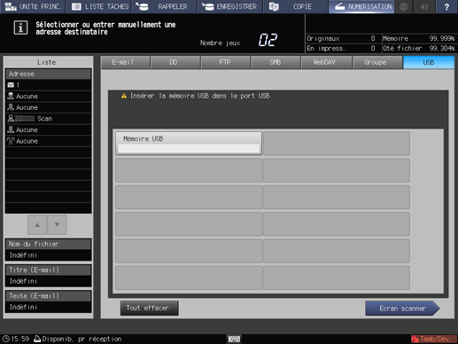 Appuyez sur Mémoire USB dans la liste d'adresses.