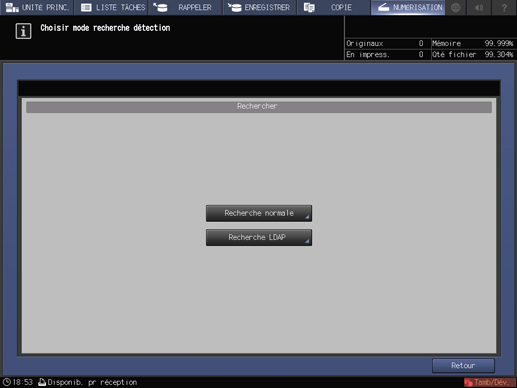 Explication supplémentaireAppuyez sur Retour pour retourner sur l'écran Recherche en cas d'erreur de recherche LDAP.
