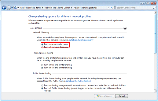Avant d'installer le pilote, vérifiez que Découverte du réseau est activé dans Panneau de configuration - Centre Réseau et partage - Paramètres de partage avancés.