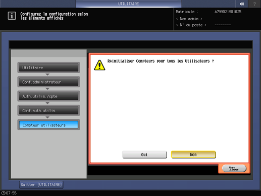 Permet de remettre à zéro les compteurs d'impression pour les utilisateurs authentifiés et utilisateurs publics, individuellement ou collectivement.