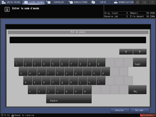Entrez le mot de passe défini dans Impression sécurisée et appuyez sur Valider.