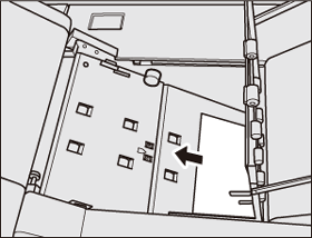 Sur une machine dotée de l'unité de finition FS-532 installée à gauche du thermorelieur PB-503, le papier est acheminé vers l'unité de finition.