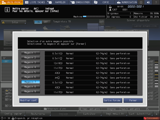 Explication supplémentaireLe magasin disponible est celui chargé du papier de même format.