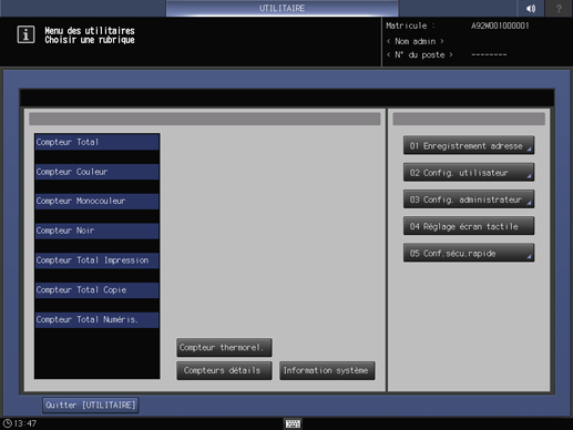 Explication supplémentaireAppuyez sur Quitter [UTILITAIRE] pour finaliser la configuration.