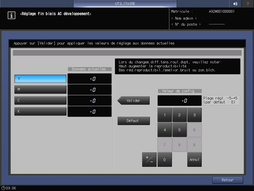 Appuyez sur Configuration système sur l'écran Menu Config. administrateur. Appuyez successivement sur Réglages expert, Réglages procédé et Régl.fin diff.tens.roul.dvpt.