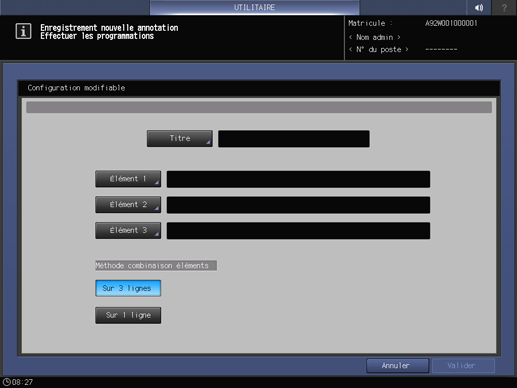 Explication supplémentaireLorsque N° annotation est sélectionné, l'écran Configuration numéro annotation s'affiche.