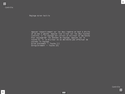 Appuyez sur chaque touche Contrôle dans les coins supérieur gauche et inférieur droit de l'écran pour vérifier si le signa sonore fonctionne correctement.