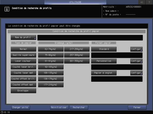 Le profil prédéfini fait référence à un profil papier pré-enregistré sur cette machine. Si un profil prédéfini est ajouté à un profil papier, il peut être utilisé en tant que profil papier. Un profil prédéfini peut être recherché ou supprimé.