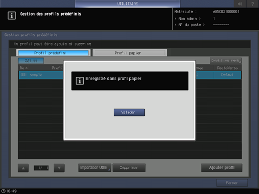 Explication supplémentaireLe profil papier ajouté depuis le profil prédéfini est également indiqué par