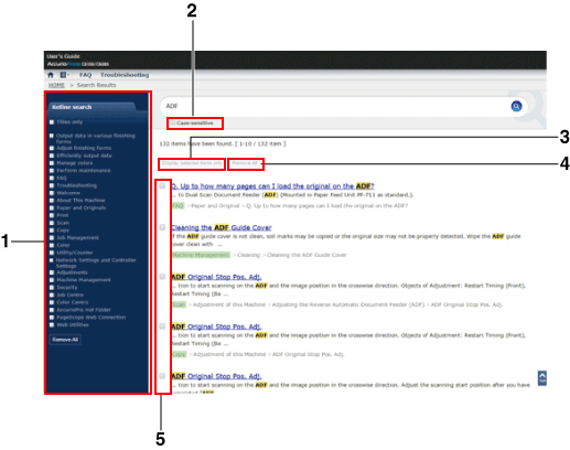 3 | Afficher éléments sélectionnés uniquement | Cliquez dessus pour n'afficher que les éléments sélectionnés en cochant la case Affiner. Si vous fermez le navigateur Web ou effectuez une autre recherche à l'aide d'un autre mot-clé, l'affichage est réinitialisé. |