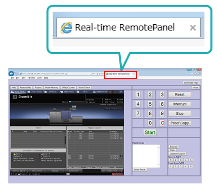 Les opérations exécutées sur le panneau distant en temps réel peuvent être masquées sur l'écran tactile de la machine. Pour des détails, voirFonctionnalités de sécurité du panneau distant en temps réel.