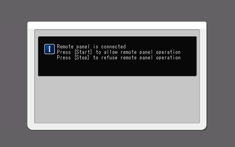 L'écran d'avertissement de connexion est refermé et l'affichage d'origine est rétabli. De plus, la machine est connectée au panneau distant en temps réel et le même écran s'affiche côté distant.