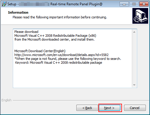 Explication supplémentairePour faire fonctionner, le plug-in, il est nécessaire d'installer Microsoft Visual C++ 2008 Redistributable Package sur l'ordinateur. Si le package a déjà été installé, passez à l'étape 5.