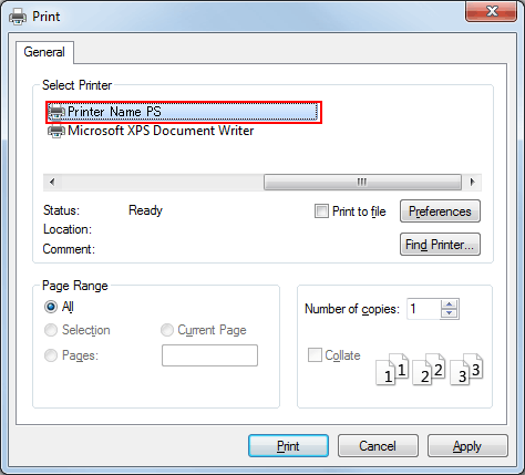 La fenêtre [Print] varie en fonction du logiciel d'application.